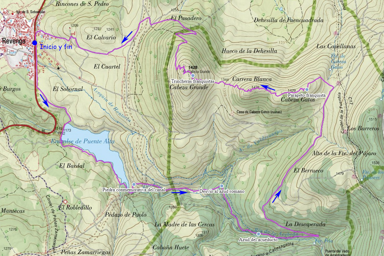 Ruta Revenga, azud romano, Cabeza Gatos